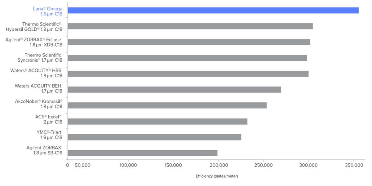 One of the world’s leading HPLC brands, now enhanced for incredible HPLC and UHPLC performance! Luna Omega 1.6, 3, and 5 µm columns culminate 20 years of technological prowess, advancements, and innovation from Phenomenex! With astounding efficiency levels, highly versatile selectivities, and trusted accuracy, Luna Omega columns will take your chromatographic experience to a new level.