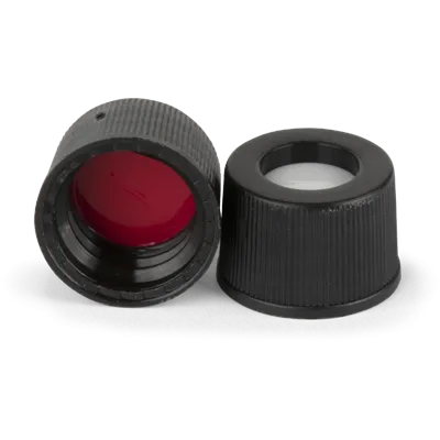 Verex Cap (pre-assembled), 10-425, w/, Bonded-in PTFE/Silicone preSlit septa, blk, 100/Pk