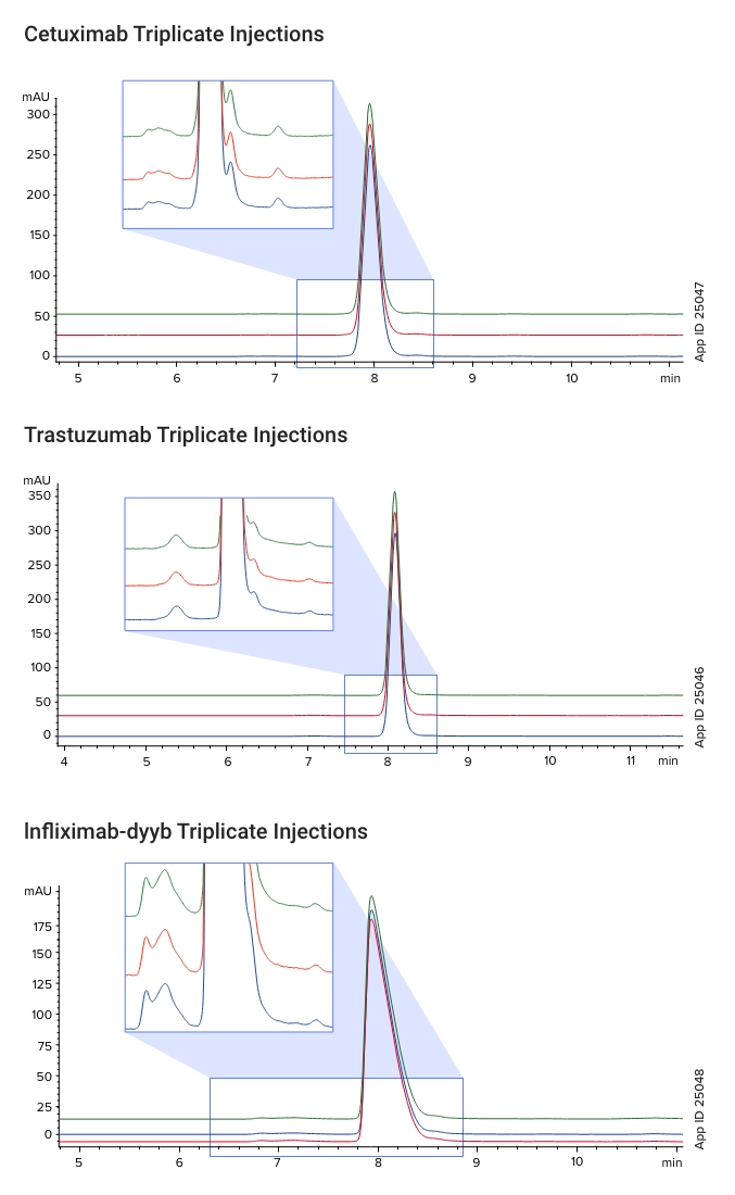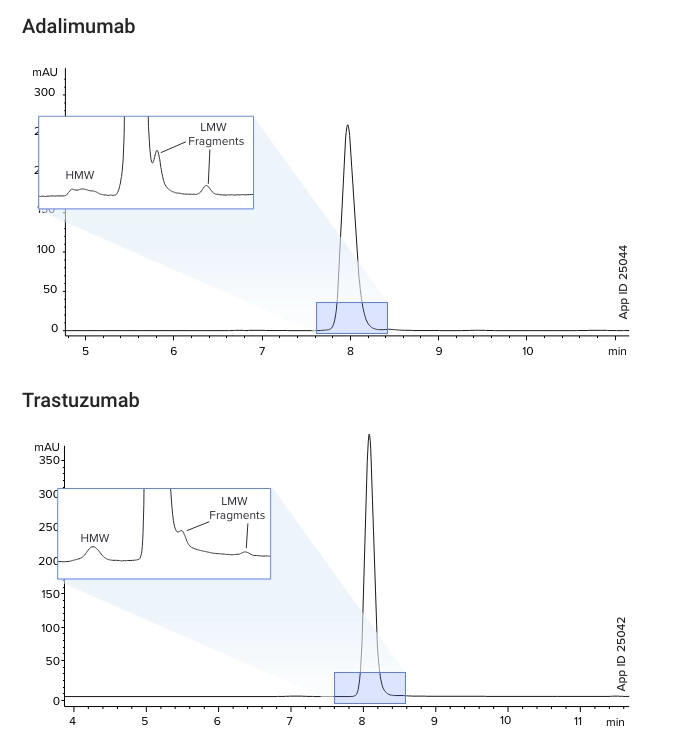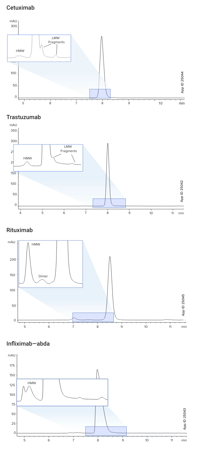Recommended Use Analysis of monoclonal antibodies, biosimilars and other biomolecules by using specific molecular weights with improved column lifetimes and recovery |
