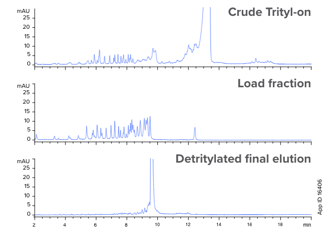 | Crude Trityl-on | Load Fraction | Detritylated Final Elution | Recovery | Purity (Peak area) |