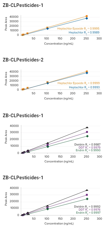“ I was able to install the ZB-CLPesticides-1 and ZB-CLPesticides-2 columns as a direct replacement for the Restek Rtx-CLPesticides and Rtx-CLPesticides2 columns that I currently use. I made no changes to the method and saw very little difference between the two columns.“